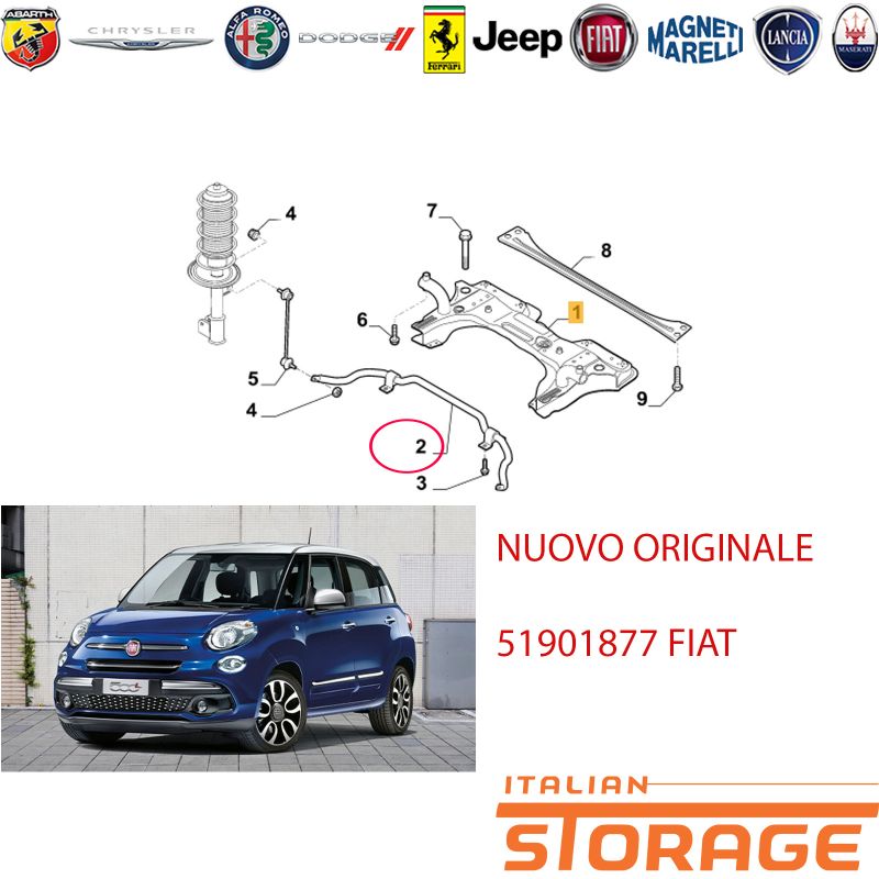 Su italianstorage.com trovi i migliori prezzi sul codice ricambio 51901877: Fiat 500l 1.6 Multijet Barra Stabilizzatrice Anteriore Nuovo Originale Rif 51901877 del marchio FIAT ALFA LANCIA.