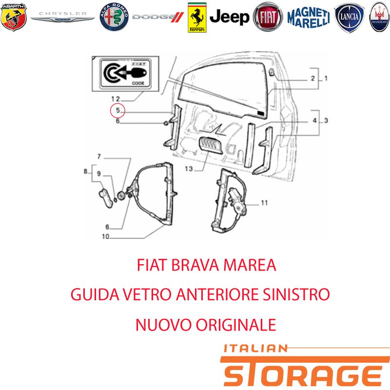 Su italianstorage.com trovi i migliori prezzi sul codice ricambio 46421162: Fiat Brava Marea Guida Vetro Anteriore Sinistro Nuovo Originale 46421162 del marchio .