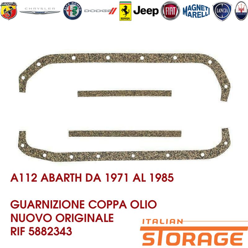 Su italianstorage.com trovi i migliori prezzi sul codice ricambio 5882343: A112 Abarth Da 1971 Al 1985 Guarnizione Coppa Olio Nuovo Originale 5882343 del marchio FIAT ALFA LANCIA.