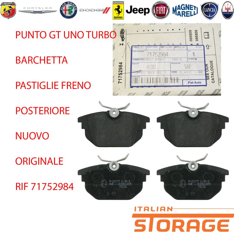 Punto Gt Uno Turbo Barchetta Vedi Sotto Tutte Le Applicazioni Pastiglie Freno Posteriore Nuovo Originale Rif 71752984