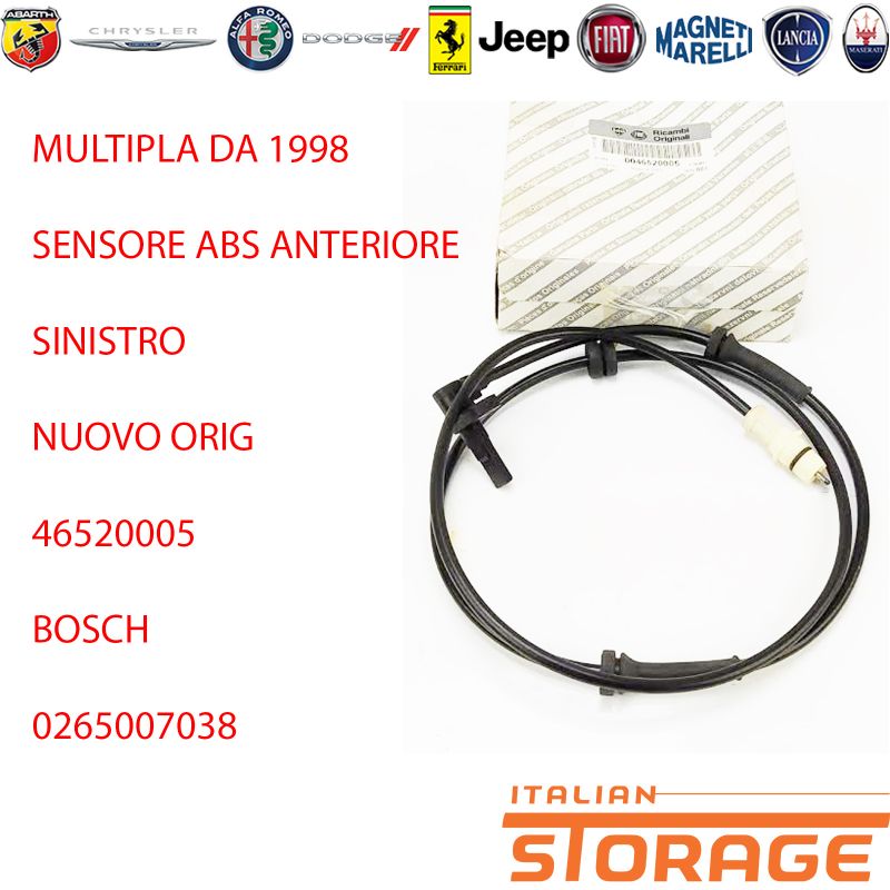 Multipla Da 1998 Sensore Abs Anteriore Sinistro Nuovo Orig 46520005 0265007038