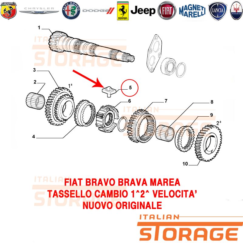 Su italianstorage.com trovi i migliori prezzi sul codice ricambio 46742449: Fiat Bravo Brava Marea Tassello Cambio 1^ 2^ Velocita' Nuovo Originale 46742449 del marchio .