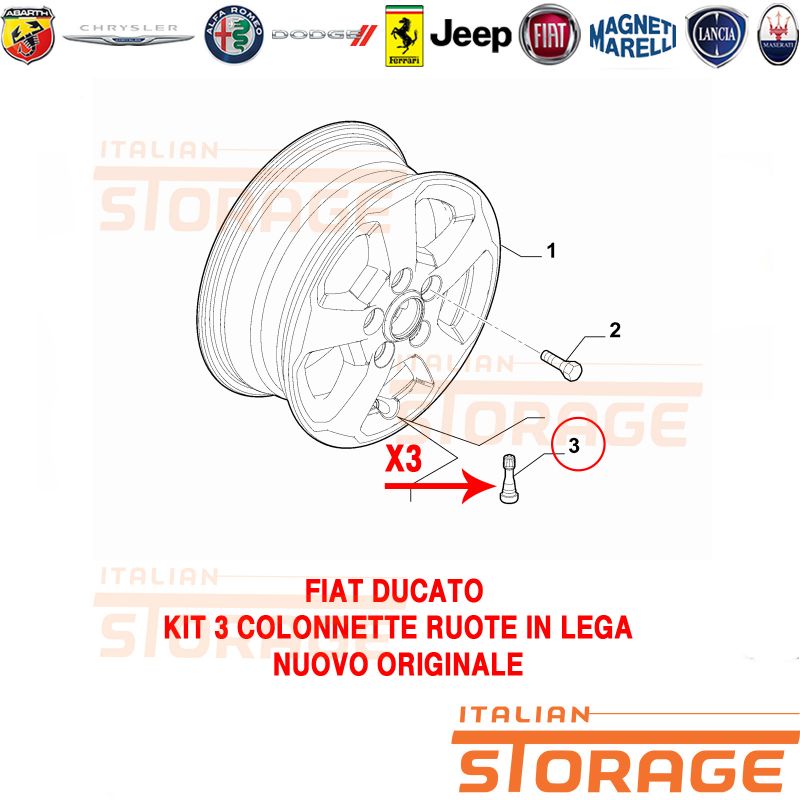Su italianstorage.com trovi i migliori prezzi sul codice ricambio 1363349080: Fiat Ducato Kit 3 Colonnetta Ruote In Lega Nuovo Originale 1363349080 del marchio .