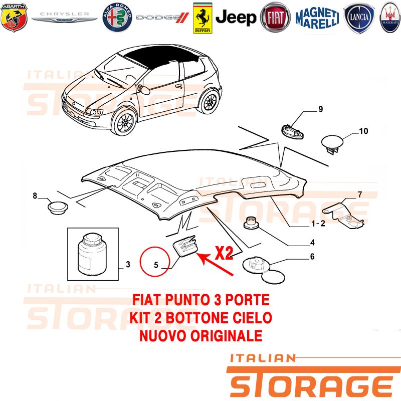 Fiat Punto 3 Porte Kit 2 Bottone Cielo Nuovo Originale 735309301