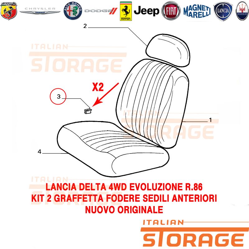 Lancia Delta 4wd Evoluzione R86 Kit 2 Graffetta Fodere Sedili Anteriori Nuovo Originale 14184474