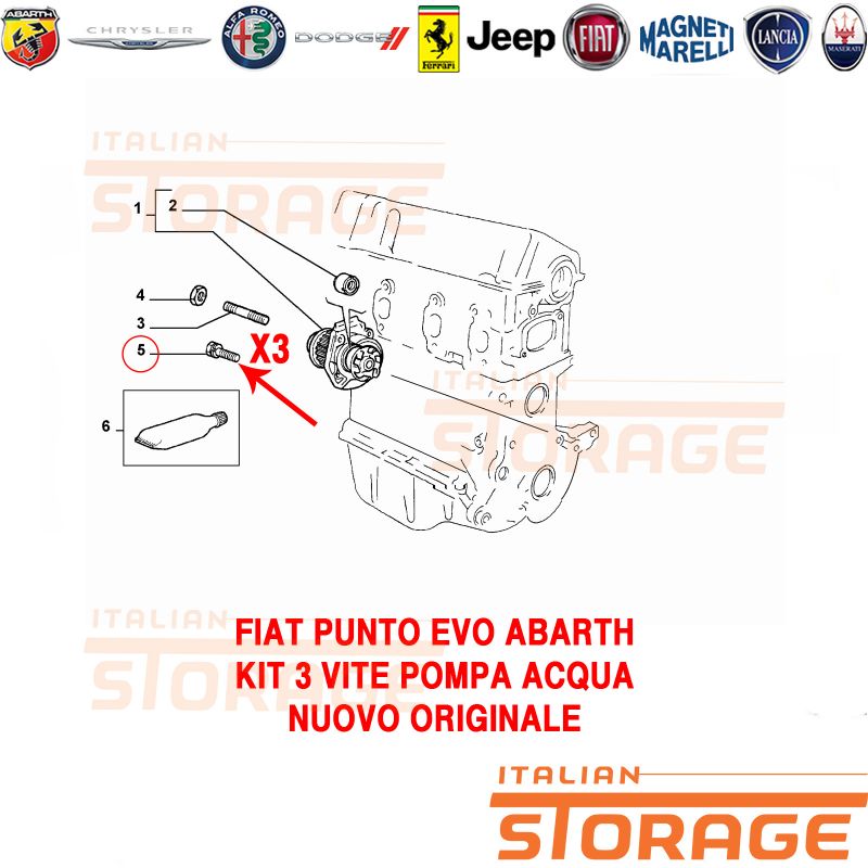 Su italianstorage.com trovi i migliori prezzi sul codice ricambio 18750524: Punto Evo Abarth Kit 3 Vite Pompa Acqua Nuovo Originale 18750524 del marchio .